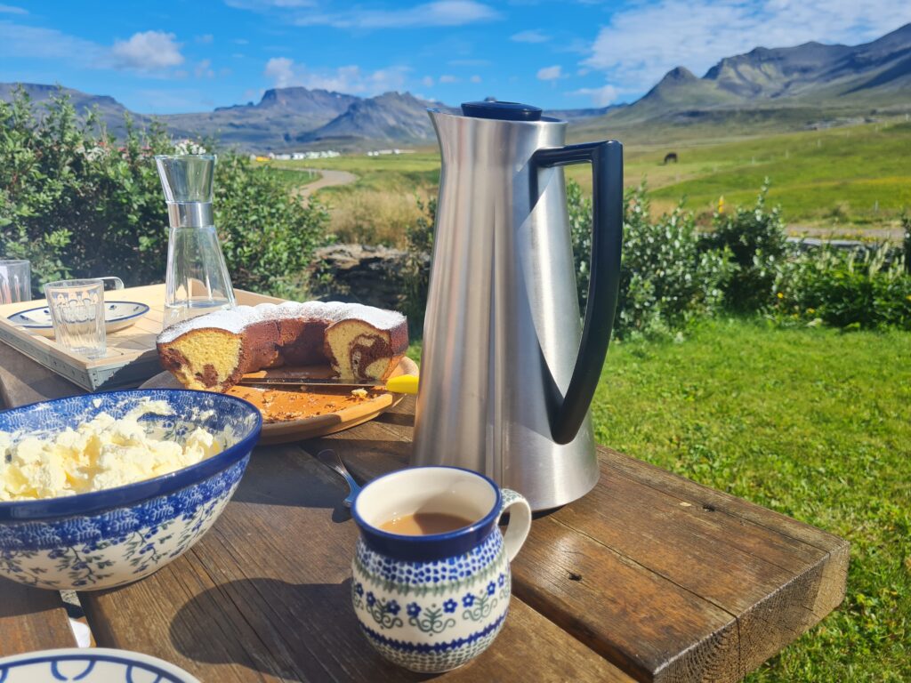 Die Kaffeepause ist doch der wahre Sinn des Lebens alle Tage – aber an einem strahlenden Sommertag hinterm Haus ist es doch etwas besonderes!
